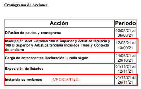 La Secretaría de Asuntos Docentes de Almirante Brown informa que ya están expuestos en el abc los listados 108 A, 108 B, SUPERIOR y ARTÍSTICA TERCIARIA, incluidos FinEs y Contexto de Encierro 2021/2022 y que hasta el 26 de noviembre de 2021 se podrá realizar el reclamo correspondiente.